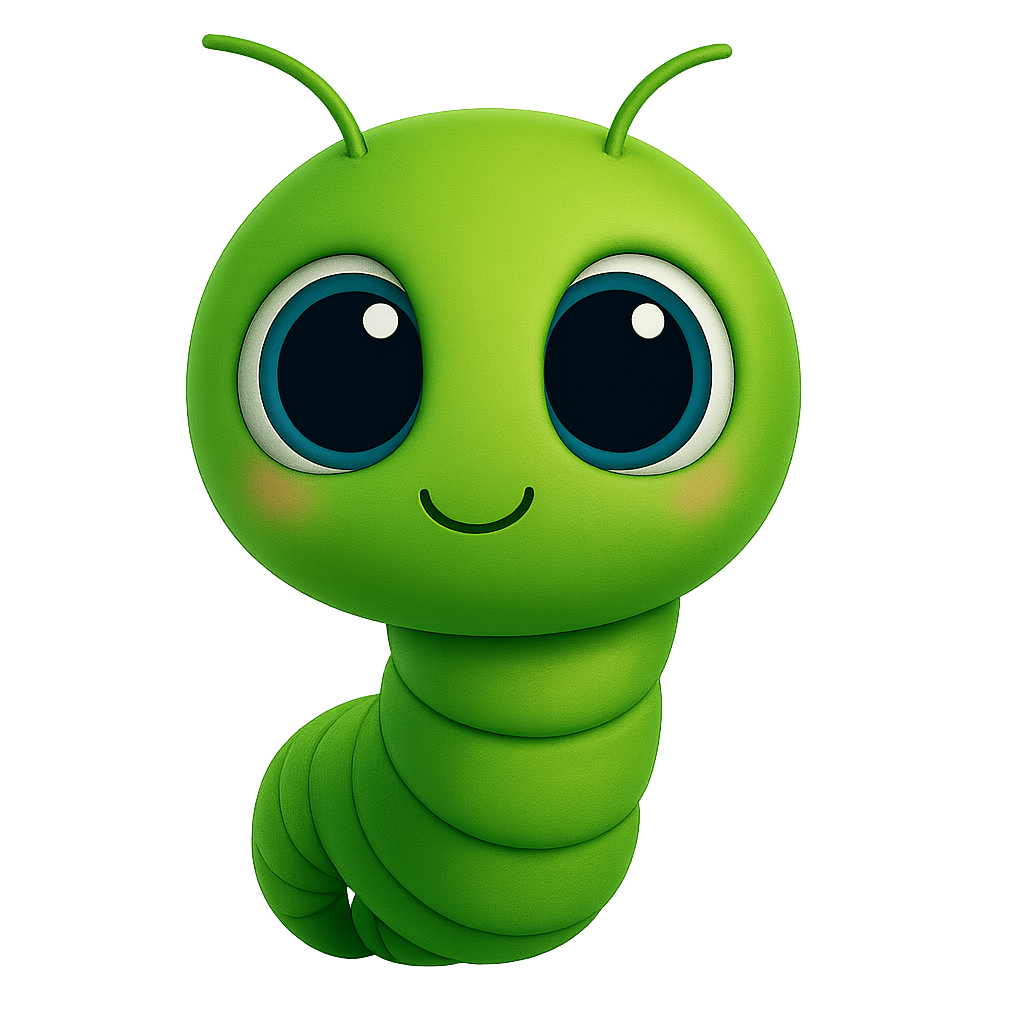 He is a small green worm who lives in a quiet forest, where curiosity, calm observation and emotional presence guide each story.